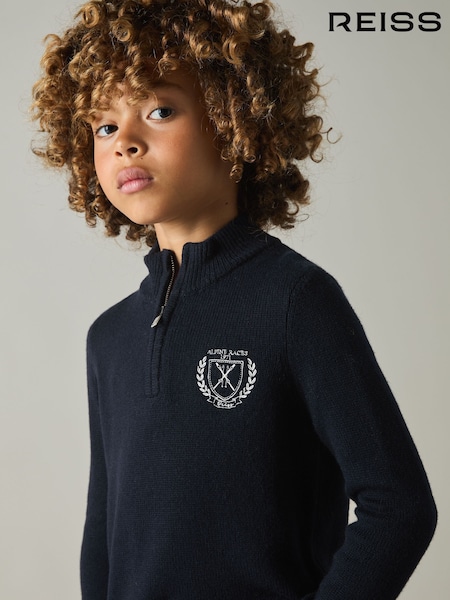 Reiss Navy Mathieu 3-9 yrs Embroidered Quarter Zip Jumper with Wool