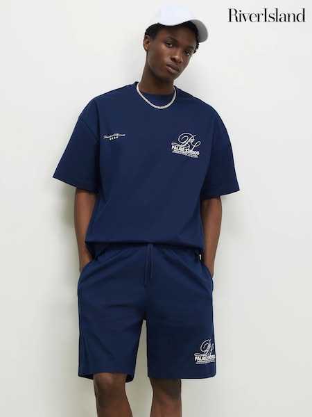 River Island Blue Oversized Word Boxy T-Shirt & Shorts Set