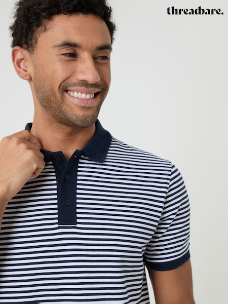 Threadbare Blue Stripe Cotton Pique Polo Shirt