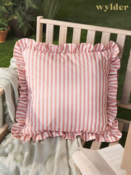 Wylder Pink Millie Ruffle Striped Outdoor Cushion