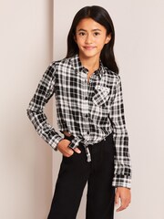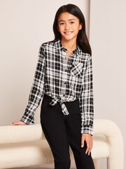 This check shirt from Lipsy girl, features a tie front detail and a front pocket with diamonte embellishment. Check shirt from Lipsy girl Features a tie front detail Front pocket with diamante embellishment 99% Viscose, 1% Metallised fibre. Country of Origin: India