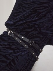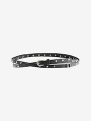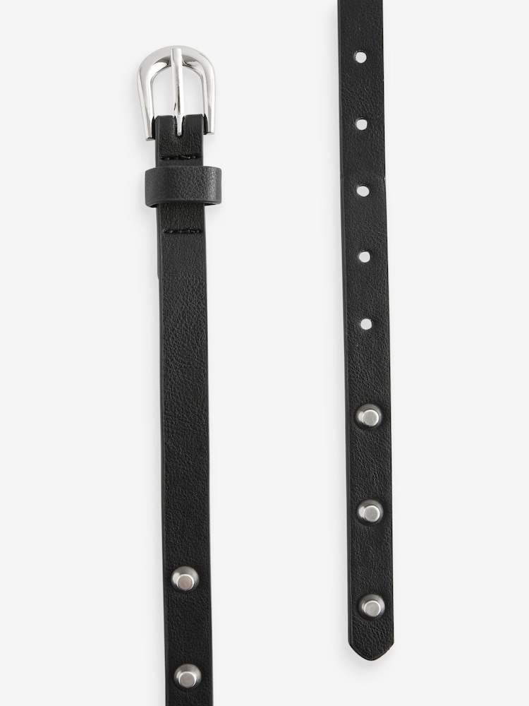 This skinny belt can be worn with trousers or as a waist belt to compliment your figure, made from a PU faux leather with stud and ring detailing, finished with a silver-tone buckle and a keeper strap. Skinny width PU faux leather Stud detailing 100% Polyurethane. Country of Origin: China