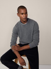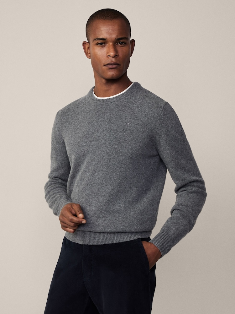 Our signature lambswool crew, knitted using superfine luxury wool, fully fashioned with ribbed cuff and hem and double necktrim. 100% Lambswool. Country of Origin: Great Britain