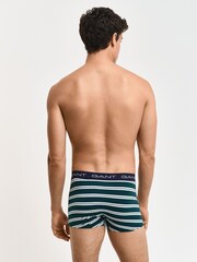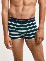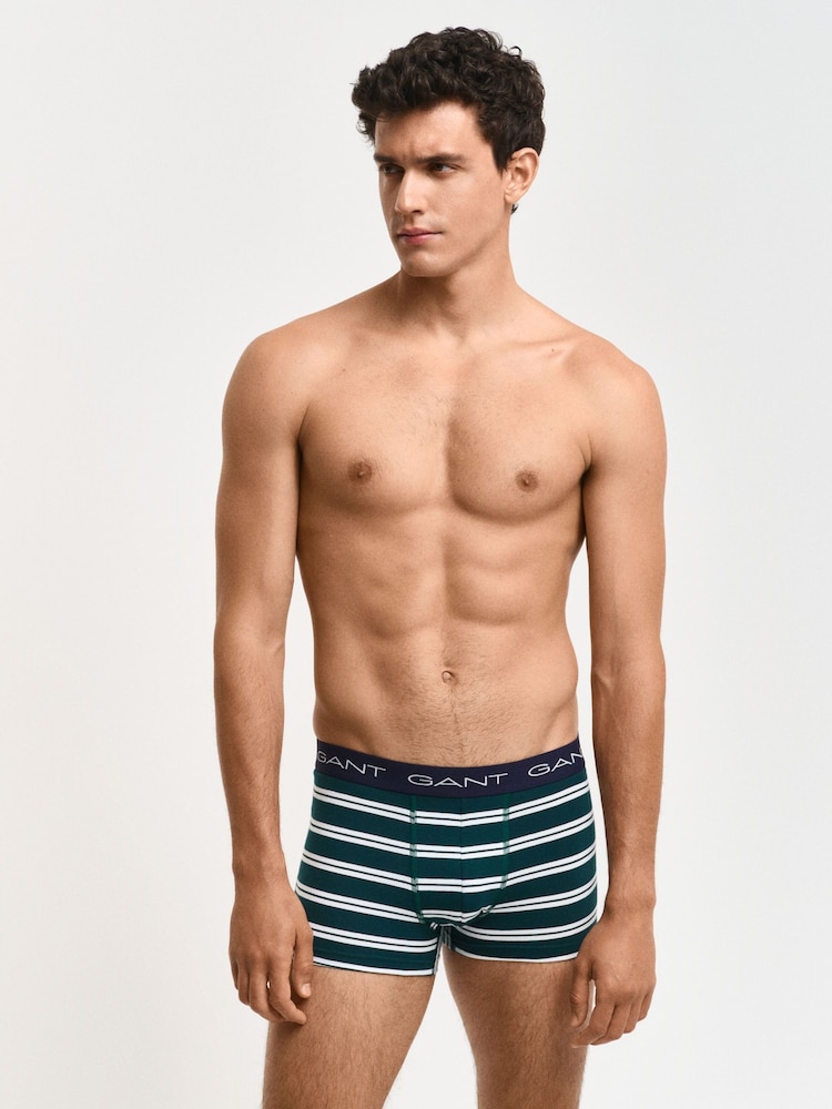 Discover this premium three-pack of trunks from GANT, made from cotton jersey with a touch of stretch for added comfort. These trunks are designed in a slim fit with a short leg length and regular waist. The pack includes two solid-colored pairs and one pair patterned with yarn-dyed stripes. Each trunk is designed with a jacquard-knitted elastic waistband adorned with repeating GANT logotypes. By choosing our cotton products, you’re supporting GANTs investment in Better Cotton’s mission. This product is sourced via a system of mass balance and therefore may not contain Better Cotton. Read more on bettercotton. Washable. 95% Cotton, 5% Elastane. Country of Origin: India